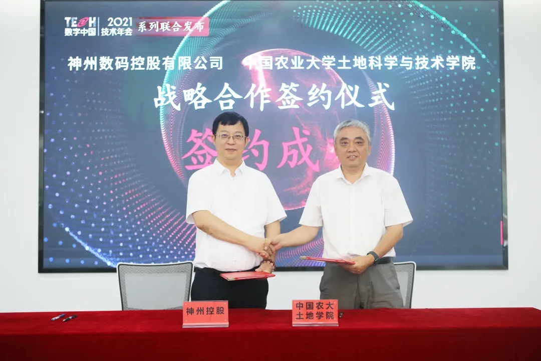 期间,神州控股与中国农大土地学院达成战略合作关系,双方将成立“农业大数据联合实验室”,开展时空大数据在土地保护等领域的研究和实践。神州控股智慧城市服务集团副总裁陈静、中国农业大学土地科学与技术学院院长李保国教授分别代表双方签署协议。